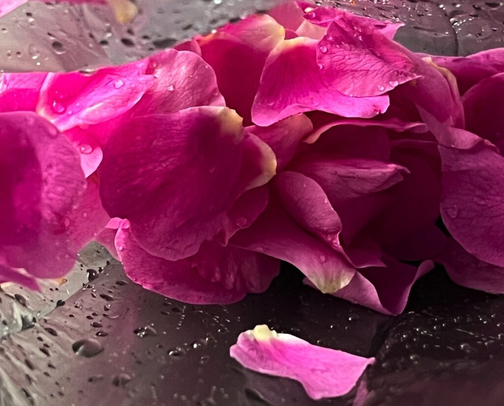 If there are lots of new buds coming, you might feel good about taking more petals, because you know that there will soon be more. Or you may prefer to take a set portion that feels fair/good to you for a balanced ecosystem – maybe 1/4 of the blooms, for example.