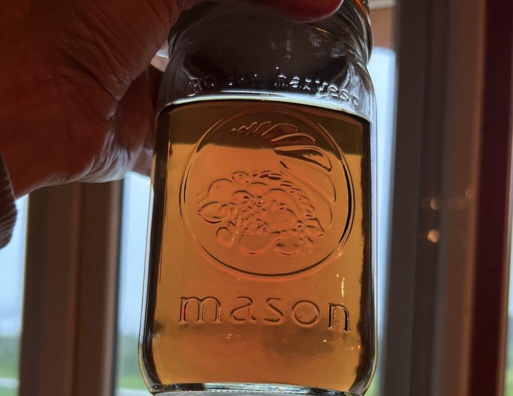 6. Discard petals and pour your finished wild rose water into a clean glass jar(s). Allow mixture to cool with lid placed lightly on top (keep the steam in but don’t seal). Once jars have cooled a bit, seal tightly with lid and store in the fridge until ready to use.