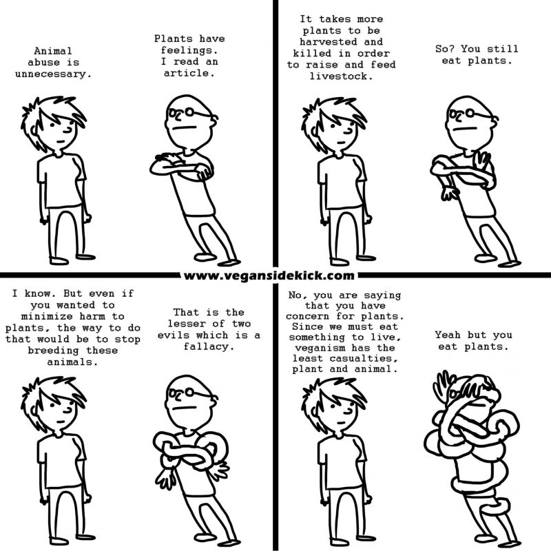 So then I do some more research and I find vegans who are willing to have this conversation about eating fellow sentient beings (i.e. plants). And this pretty much sums up the response: